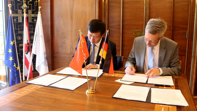 On August 10, the delegation visited the Free University of Berlin and met with President Günter Ziegler and Vice President for International Affairs Verena Blechinger-Talcott. Both parties hoped to deepen cooperation in the domains of humanity and social sciences and explored the prospect of a joint educational program. ZOU Xiaodong and Günter Ziegler re-signed the agreement on cooperation between two universities and the student exchange agreement.