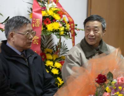 今天下午,校党委书记张浚生、副校长黄书孟及有关部门负责人来到理学院,向理学院地科系新增选为中国科学院院士的徐世浙教授表示祝贺。黄书孟在会上宣读了中科院的决定,张浚生代表学校向徐世浙教授表示祝贺。 (摄影:韩美琳)