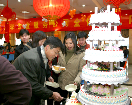 第二食堂餐厅高高挂着的中国结和形态各异的小猴子饰物,给这顿特殊的年夜饭增添了几分喜气。因为买不到火车票而未能在年前回家的浙大学生小陈说:“虽然不能和家人在一起吃年夜饭,但有那么多同学一起过年,也挺难得的。”