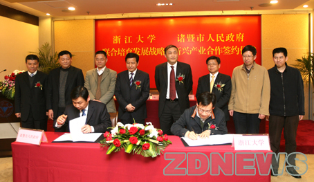 4月12日下午,浙江大学与诸暨市在浙大紫金港校区签订了关于联合培育发展战略性新兴产业的协议。根据协议,双方将共同致力于在具有良好市场前景的高速列车、制冷设备、环保产业等新兴领域开展相关技术及设备的研究与开发,并逐步形成系列化新产品。