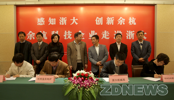 本次活动以“感知浙大,创新余杭”为主题,是浙大与余杭区签订战略合作协议后开展“区校合作”的一次深度对接。浙大地方合作处和材料系、机械系、农学院分别与余杭区良渚镇和4家余杭科技企业签署合作协议。浙江大学良渚合作服务中心同时揭牌成立。此外,浙大学者和余杭企业家还分别就“创业余杭”与产学研合作进行了交流探讨。
