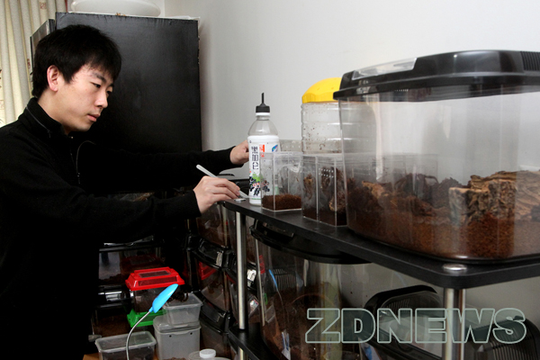 今年年初,他吆喝了一位志同道合的朋友,拿出全部的压岁钱,一起大规模地养殖培育起了蜘蛛。“旺季的时候一个月能收入3-5万,现在我的绰号就是‘蜘蛛侠’。”说完,张苑笑了起来。同时,由他写的连载悬幻小说《银色圣罗衣》已经被中国移动手机阅读网订阅,推出三个月不到的时间,点击量已达1869538次,每个月都会有近千元的收入。