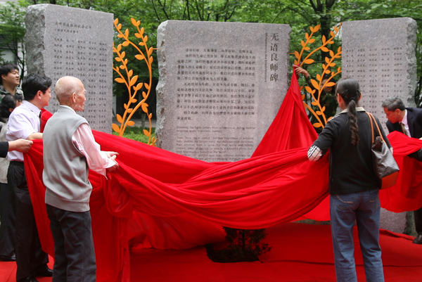 “无语良师”碑位于紫金港校区医学大楼西侧,石碑由三块独立的花岗岩和彩钢透雕围合成一个敞开的U型空间,在石碑的正中间刻着“无语良师”的字样,两侧的石碑上篆刻着遗体捐献者的姓名。“无语良师”是医学界对志愿捐献遗体者的最高称谓,是所有医学生走出校门,走向医生岗位的启蒙者。浙大医学部常务副主任罗建红说,“借浙大医学部成立100周年之际,我们建无语良师纪念碑的目的是对学生进行仁爱教育和奉献精神教育(学生上课前到纪念碑前举行纪念仪式);同时,也是医学文化的一种展示。落成后的纪念碑还将成为广大群众尤其是大学精神文明和社会道德建设的教育基地。