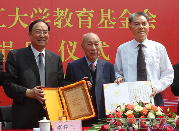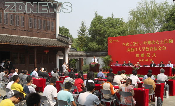 9月19日上午,香港宁波同乡会创会会长、新加坡卡尔顿酒店集团董事会主席李达三先生、叶耀珍女士伉俪向浙江大学教育基金会捐赠人民币500万元,设立“李达三叶耀珍学生国际交流奖励基金”,用于支持浙江大学学生开展国际交流,拓宽国际视野。浙大党委书记金德水代表学校接受捐赠,并向李达三颁发捐赠证书。浙大发展委员会主席张浚生向李达三颁发捐赠铭牌。浙大副校长姒健敏与李达三代表双方签署捐赠协议。 (摄影 古越)