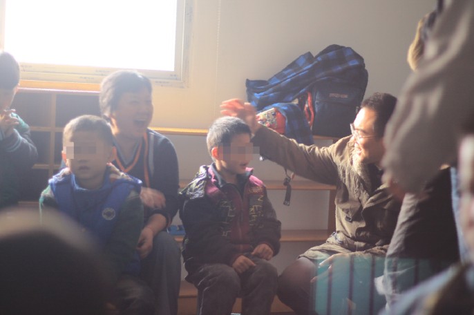 走进二楼,十几个孩子们坐在板凳上,正在看着动画片,大概只有这些新奇的画面能够暂时捕捉他们不安定的注意力。我们分散的和孩子们坐在一起,陪孩子们度过这个下午。随着与孩子们相处的时间一点点增加,我们逐渐发现了他们的特点。有的是好动,总是不愿乖乖地坐在凳子上,而是要满屋子跑;有的是不怎么说话,静静坐着;有的是认真地看电视,并随着画面手舞足蹈。但是他们都有一个共同之处,无法与我们正常交流。就像阿姨说的,“我们不能理解他们,他们也不能理解我们”。但是我们希望今后尝试和这些孩子们更多的互动,我们能更加走近他们的内心,去真正地了解他们,也让他们能够慢慢体会到交流的趣处。