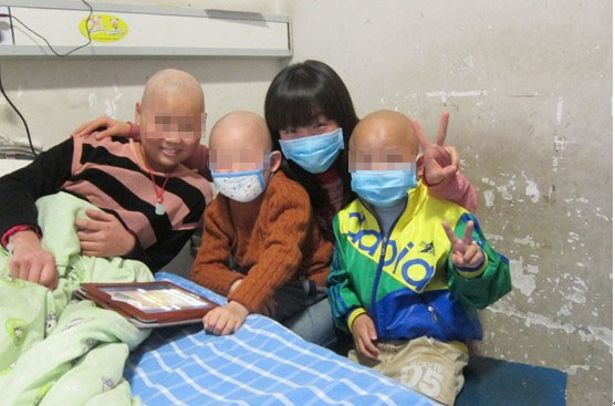 不算长的探访时间里,我们一边陪孩子打发时光,一边和孩子的父母交谈。一个孩子的母亲向我们讲述治疗过程的艰辛:不但治病的开销很大,而且因为医院床位紧缺,一个疗程结束后孩子就得必须出院回家,但抵抗力严重下降的孩子在路途中很容易感染,隔不了五六天又必须回到医院接受治疗。有时候没有空余的病床,孩子们只能暂时在人员混杂的门诊部接受输液治疗,感染的机率无疑增大不少。