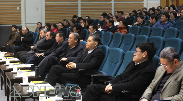 1月14日,浙江大学党委中心理论学习(扩大)会议暨学习贯彻党的十八大精神培训会在紫金港校区临水报告厅举行。浙江大学党委书记金德水传达了刚刚召开的第二十一次全国高校党的建设工作会议的精神,中央党校党建部副主任张志明教授和浙大思政教研部主任吕有志教授应邀作辅导报告。会议由校长杨卫主持。