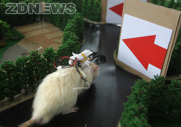 穿山洞,过小桥,逛马路,一个乒乓球桌大小的沙盘上,背着“书包”的大白鼠正在执行任务,它的目标是找到一张印着汤姆·克鲁斯头像的照片。不一会,大白鼠准确地找到了目标照片。这是浙江大学承担的国家“973项目”“脑机融合感知和认知的计算理论与方法”课题取得的最新进展。