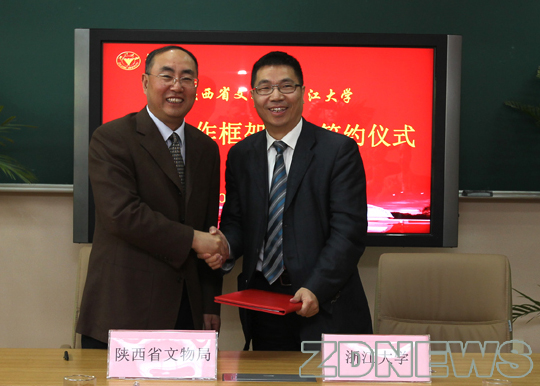 4月11日上午,浙江大学与陕西省文物局在浙大紫金港校区签署合作协议,双方将在文化遗产的研究与保护等领域开展战略合作。陕西省文物局局长赵荣受聘为浙江大学兼职教授。