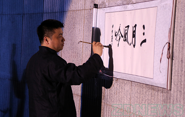 三月三,一个与作诗有关的节日。4月11日晚7点,由人文学院主办的甲午年三月三诗会在紫金港校区下沉广场拉开帷幕,师生一道品茶、吟诗、作画、吹笛,寓教于乐。受主办方之邀,中国美术学院的林海钟先生现场进行了即兴创作,泼墨挥毫。