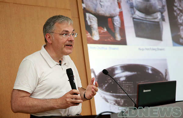 论坛上,罗泰教授全程用中文进行演讲。他详细介绍了中国考古学的源头——北宋时期的金石学。“我30多年前第一次到中国学考古时,在北大见到了金石学的遗风。这么多年过去了,金石学仍然在中国考古学中占有很重要的位置。”他认为,中国的考古学界越来越把中国文化放在世界文明古国的大背景下来进行了解,这是很正确的,在此基础之上能够促进中国考古的科学化,也能更加有效地研究出中国古代文明的特点。
