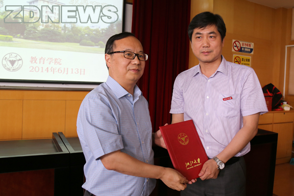 掌声、笑语,热情欢快的气氛中,浙江大学常务副校长宋永华代表学校对张辉教授的加盟表示诚挚地欢迎,并为他佩戴浙江大学校徽。