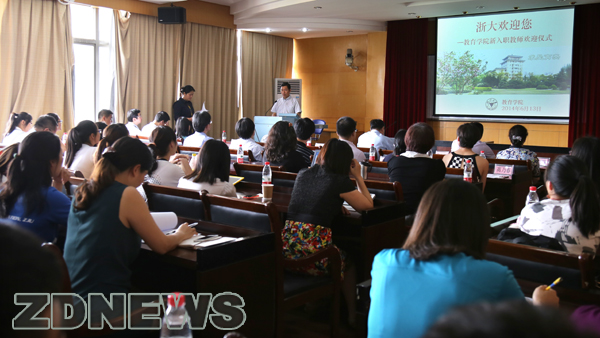 “来,我们和浙大学生一起合个影吧。”6月13日,学校举行“浙大欢迎您”仪式,欢迎体育科学专家张辉教授加盟浙江大学,专程陪同丈夫前来就职的张辉教授夫人从教育学院同学们的手中接过鲜花,高兴地招呼丈夫和同学们合影。