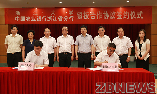 浙江大学与中国农业银行股份有限公司浙江省分行6月13日在杭新签合作协议,进一步深化和提升银校合作。在未来三年内,浙江省农行将向浙大提供总额20亿元人民币的意向性信用额度,重点支持浙大基础设施建设和先进设备购置等。