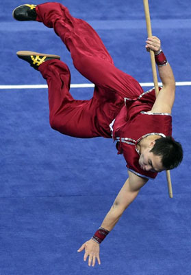9月22日,在2014仁川亚运会武术项目男子南拳南棍全能比赛中,代表中国武术队出赛的浙大教育学院2012级本科生王地摘得该项目金牌。