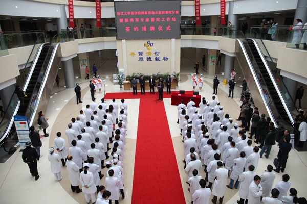 在仪式上,刘成国、徐海虹及蔡秀军先后发表了发自肺腑、热情洋溢的讲话。随后,蔡秀军与刘成国签订了蔡秀军专家普陀工作站工作协议;蔡秀军与邱一虹为“蔡秀军专家普陀工作站”揭牌;蔡秀军与刘成国为“浙江大学医学院附属邵逸夫医院普陀分院”揭牌。仪式举行前,我院消化内科主任戴宁、肾内科主任李华、心内科副主任何红、急诊科主任周道扬、普外二科副主任虞洪、头颈外科副主任谢磊及超声科医师吕江红还参加了在普陀医院举行的大型义诊,受到了当地老百姓的热烈欢迎。