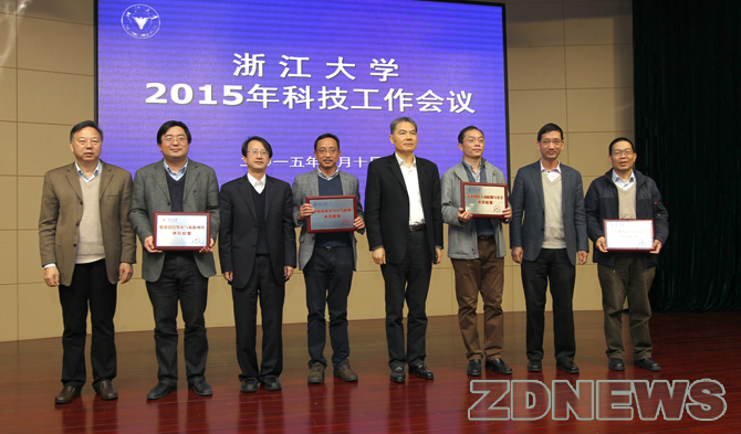 4月10日上午,在浙江大学2015年科技工作会议上,党委书记金德水、校长吴朝晖和校发展委员会副主席陈子辰、党委副书记严建华分别向“科技联盟”首席科学家授牌。会议回顾了2014年科技工作进展,对2015年科技重点工作进行了研究部署。