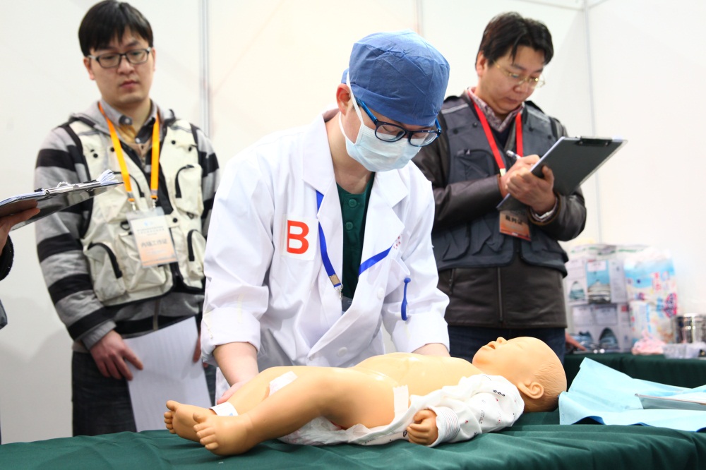 在浙大一院全权协办的医学生临床技能竞赛上,面对模拟实战的人体模型和各种医疗器械,医学生们一点不含糊,团队协作,操作麻利,手法虽不娴熟但明显很规范。