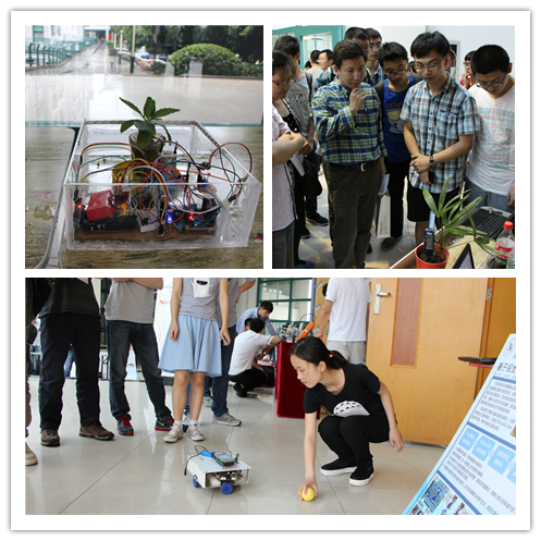 评委老师们在志愿者们的引导下依次来到各个科研项目小组的展示台前,仔细询问了科研项目的原理及应用,是否申请专利及发表相关论文,并就项目中的一些细节对项目组成员进行了提问。参展的同学们详细地介绍了自己的项目,并对评委老师的问题一一作答。与此同时,观众们也对自己感兴趣的科研项目与项目组成员进行了近距离的交流,从他们身上学习科研的经验。