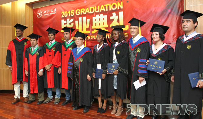 6月26日下午,浙江大学2015届外国留学生毕业典礼和首次推出的毕业生家长见面会在玉泉校区举行,近300名外国本科毕业生、研究生毕业生和部分亲属共同参加了当天的活动。浙江大学常务副校长宋永华对毕业的留学生们圆满完成学业表示衷心祝贺。