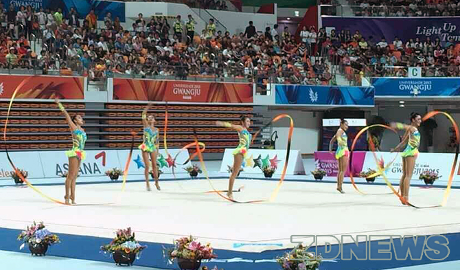 在刚结束的第28届世界大学生运动会上,浙大学子为中国军团赢得艺术体操集体全能第五、集体五带单项第五和集体6棒2圈单项第五。浙大艺体队姑娘们的努力,受到了中国大学生体育协会的赞赏。