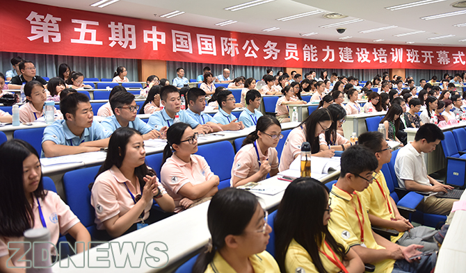 7月28日上午, 第五期中国国际公务员能力建设培训班在浙江大学紫金港校区开班。来自北京大学、清华大学、浙江大学、复旦大学、香港大学及耶鲁大学、哥伦比亚大学等67所国内外高校和机构的160余名培训班学员,将在浙大开展为期10天的培训。浙江大学党委书记金德水出席开幕式并致辞。