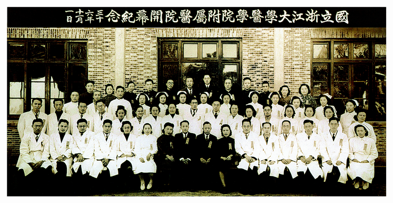 看到这帧合影,想必大家并不陌生,照片上的铭文已经告诉我们,为“国立浙江大学医学院附属医院开幕纪念”而摄,时间是(中华民国)三十六年十一月一日,即公元1947年11月1日。