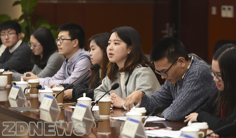“各个信息发布平台的‘孤岛’如何联通?”“毕业生可以什么样的形式为母校留下纪念?”“在培养大学生的创新创业意识时,如何高效运用现有平台?”一个个问题不断抛出,师生代表的话匣子也不断打开。