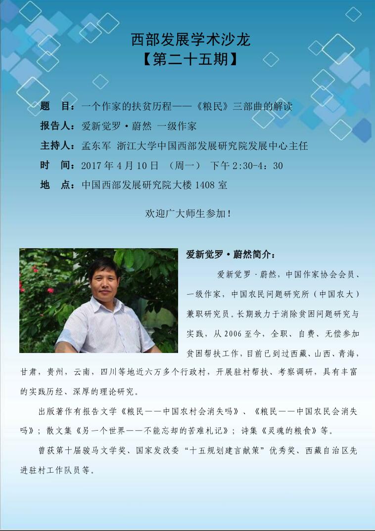西部学术沙龙【第二十五期】爱新觉罗·蔚然:一个作家的扶贫历程——《粮民》三部曲的解读