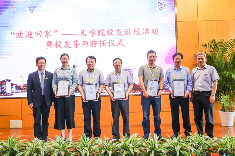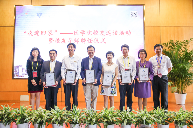 为了全面贯彻落实全国高校思想政治工作会议精神,紧密围绕浙江大学建设“双一流”的战略和培养时代高才的目标,2017年5月21日校庆之际,在医学院举行的“欢迎回家”的校庆主题活动上,医学院聘任28名卫生事业管理、医学研究和临床医疗方面的杰出校友担任校友导师并举行了聘任仪式,以此激发医学生向优秀学长学习,并提前接受校友文化的感恩教育,同时增强校友凝聚力,形成良好的传帮带文化氛围,为校友回馈母校提供平台。仪式由医学院党委书记黄河主持。段树民院长、李晓明常务副院长、许正平副院长、朱慧副书记向首批“校友导师”代表颁发了聘任证书。