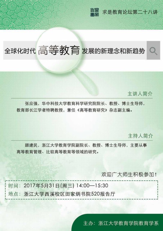求是教育论坛第二十八讲——全球化时代高等教育发展的新理念和新趋势