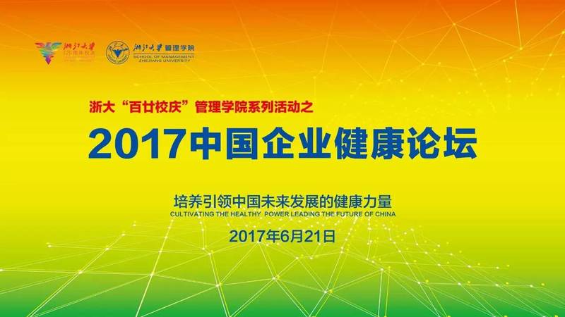 2017年6月21日,由浙大管院、浙江大学全球浙商研究院联合主办的浙大“百廿校庆”管理学院系列活动之2017中国企业健康论坛将在浙江大学紫金港校区隆重举行。届时,管理学界专家学者、著名企业嘉宾及国内各大主流媒体记者将齐聚一堂,共同探讨当前中国企业的健康发展现状及发展态势。