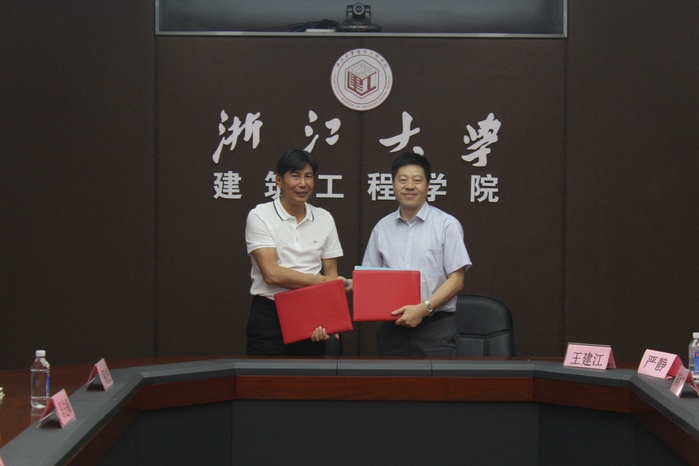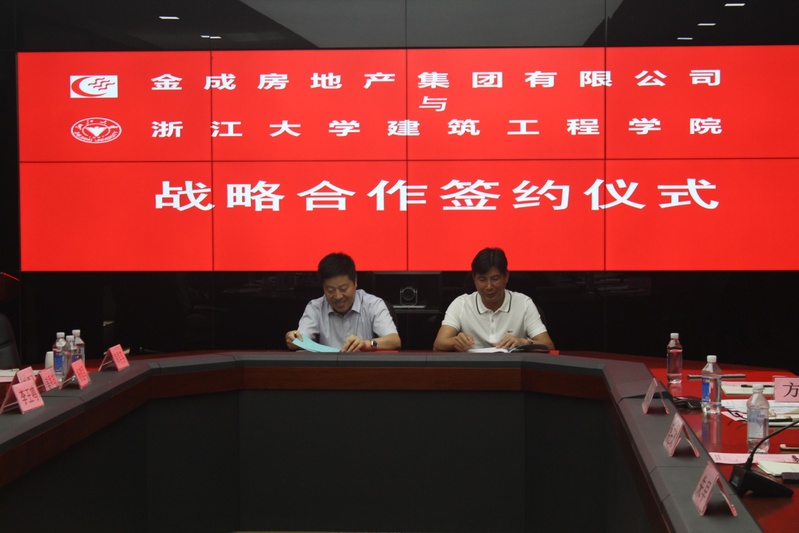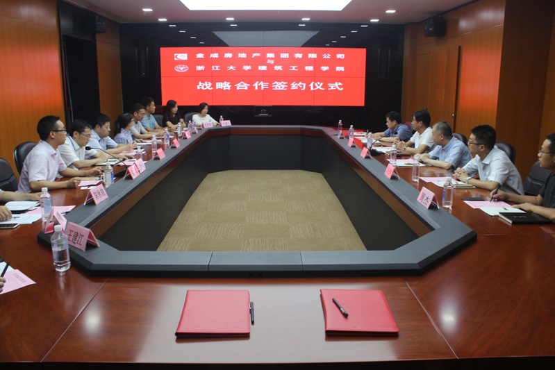 2017年8月3日下午,金成房地产集团有限公司(以下简称金成集团)与浙江大学建筑工程学院(以下简称建工学院)成立“城乡规划创新研发中心”战略合作签约仪式在紫金港校区安中大楼B332会议室举行。建工学院罗尧治院长和金成集团吴王政副董事长代表双方签署合作协议。金成集团副总裁朱早,杭州金巴登实业有限公司副总经理孟慧祥,设计工程部经理琚进峰,工程师周杰以及建工学院党委主持工作副书记郭文刚,副院长朱斌、地方合作与发展办公室主任王建江、教育教学办公室主任姜秀英、科研开发与管理科科长叶惠飞、区域与城市规划系原系主任李王鸣、区域与城市规划系主持工作副主任陈秋晓、城乡规划理论与技术研究所所长韩昊英、浙江大学城乡规划设计研究院院长杨建军等参加了签约仪式。仪式由建工学院朱斌副院长的主持。