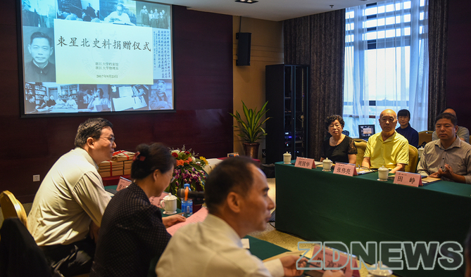 捐赠仪式后的座谈环节,与会嘉宾各抒己见,纷纷在发言中向束星北先生及其亲属表达崇高的敬意。例如,浙江大学发展委员会副主席王玉芝认为,束星北先生集才华、天赋、激情于一身,是浙大求是精神的典型代表;束星北先生的第三代和第四代弟子,浙江科技学院院长、党委副书记叶高翔与浙大物理系教授、副系主任王凯共同强调不仅要保护好史料,还要进行研究学习,以束星北先生为榜样,将求是精神一代代传承下去。