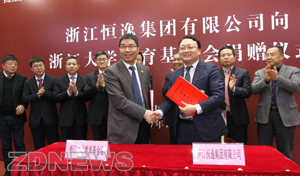 捐赠仪式由浙江大学常务副校长任少波主持,浙江大学副校长罗卫东和浙江恒逸集团有限公司总裁倪德锋代表双方在捐赠协议上签字。