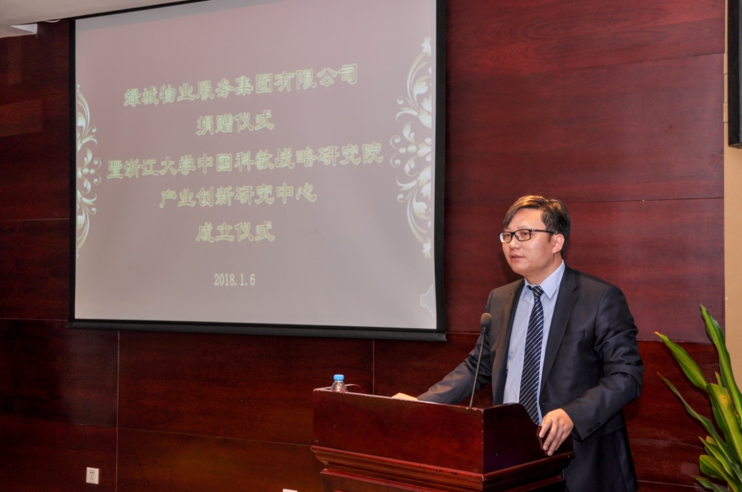 2018年1月6日上午,绿城物业服务集团有限公司向浙江大学教育基金会捐赠仪式暨浙江大学中国科教战略研究院产业创新研究中心成立仪式在浙江大学紫金港校区启真酒店隆重举行。绿城物业服务集团有限公司向浙江大学教育基金会捐赠200万元,设立“浙江大学中国科教战略研究院绿城服务基金”,用于支持浙江大学中国科教战略研究院产业创新研究中心的建设和发展。仪式由浙江大学政策研究室主任、中国科教战略研究院副院长李铭霞主持。绿城物业服务集团总裁杨掌法及副总裁徐亚萍、绿城科技产业服务有限公司董事长张福军及总经理陈昂,浙江大学党委副书记叶民、浙江大学教育基金会副秘书长顾玉林、浙江大学管理学院院长、中国科教战略研究院副院长及产业创新研究中心主任魏江、产业创新研究中心副主任李飞等嘉宾出席,中国科教战略研究院及管理学院的部分师生参加仪式。