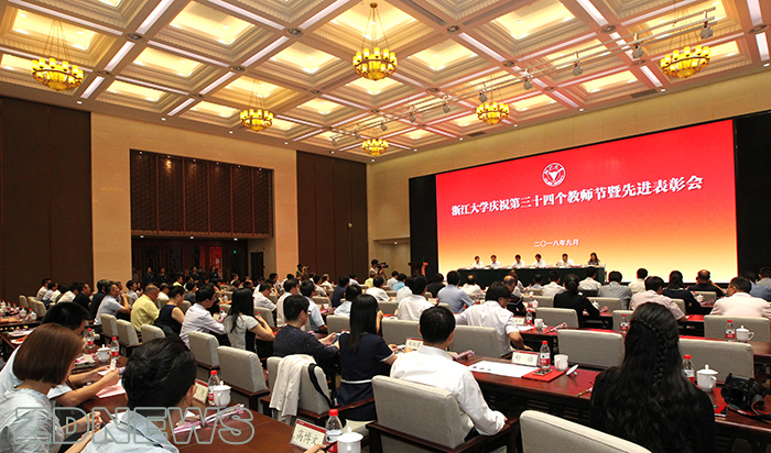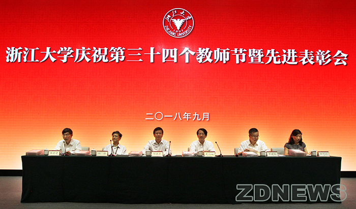 9月7日,浙江大学庆祝第三十四个教师节暨先进表彰会在紫金港校区求是大讲堂召开。会上,学校对过去一年来获得省部级以上荣誉、2017年度国家科学技术奖和2018年永平奖教金等荣誉的先进个人和集体进行了表彰。