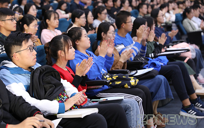 贺福初院士以科学家的角度,从文明演进惯性定律的发现,对“发达陷阱”的分析,惯性与“陷阱”之越,以及如何解放创造力等方面,对人类文明的发展进行了解读,结合跨界思考和研究成果与大家做现场交流。他说,党的十九大开启了新时代的新长征,我们不仅要完成全面建成小康社会、建设社会主义现代化强国的目标,更肩负实现中华民族伟大复兴、开创人类文明新纪元的使命,同学们要为自己的科学研究和人生设置更高的目标,打破文明的惯性,跳出思维的陷阱,争做改变范式的第一人。