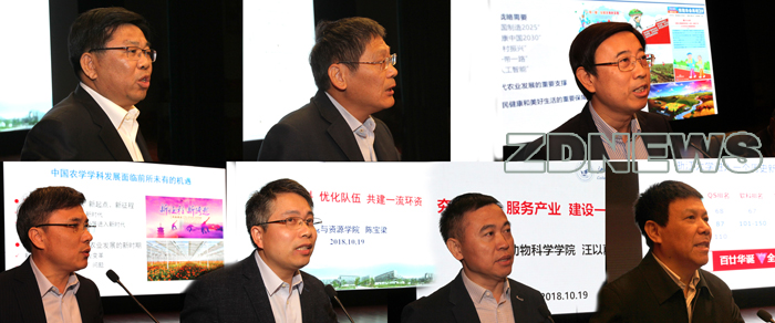 吴朝晖表示,涉农学科是我校学科发展的典范。第一要取长补短,科学分析涉农学科的发展成就与制约短板,继续保持走在前列的优势。 “十二五”以来,呈现了崭新的面貌,主要表现在,高峰学科建设取得了示范发展,人才培养水平迈向了更高层次,科研创新能力实现了显著提升,社会服务成效获得了充分肯定,并从外部挑战和内部短板,分析了学校涉农学科的发展仍面临的难题;第二要登高望远,精准对接涉农学科的国际前沿和战略需求,不断明晰学科跨越的方向。要面向国家“三农”和乡村振兴等战略需求,把握在服务中实现整体提升的契机。面向全球科技变革和学科交叉融合的趋势,把握抢占涉农学科发展制高点的机遇。面向学校“双一流”建设和全面深化改革的要求,把握综合型大学发展涉农学科的规律;第三要改革创新,深刻思考涉农学科的发展目标和战略路径,率先实现一流发展的目标。要促进涉农领域的一流学科创新发展,打造一流的涉农教育教学品牌,构建开放协同的涉农创新生态系统,推进涉农领域的全球开放发展,提升涉农领域的治理能力现代化水平。