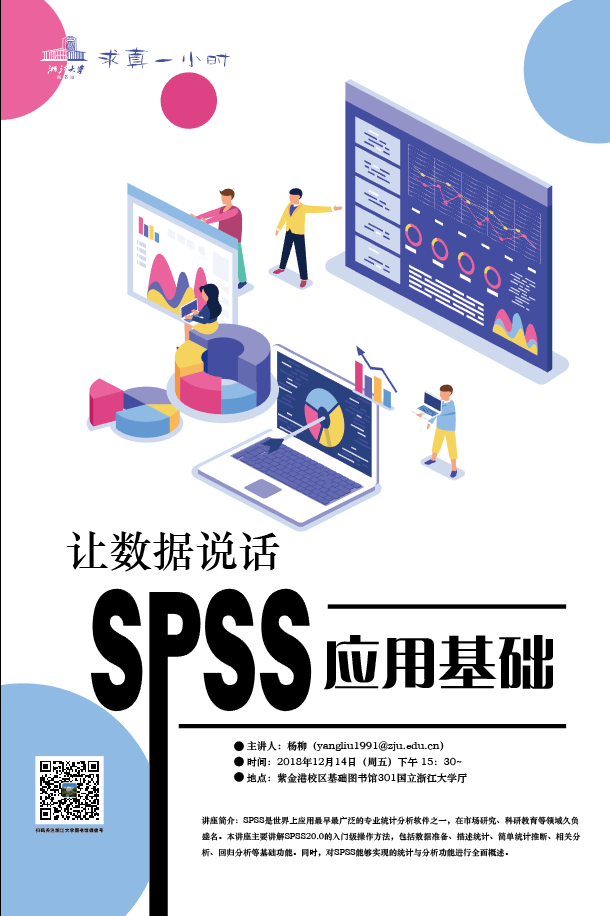 讲座简介:SPSS是世界上应用最早最广泛的专业统计分析软件之一,在市场研究、科研教育等领域久负盛名。本讲座主要讲解SPSS20.0的入门级操作方法,包括数据准备、描述统计、简单统计推断、相关分析、回归分析等基础功能。同时,对SPSS能够实现的统计与分析功能进行全面概述。