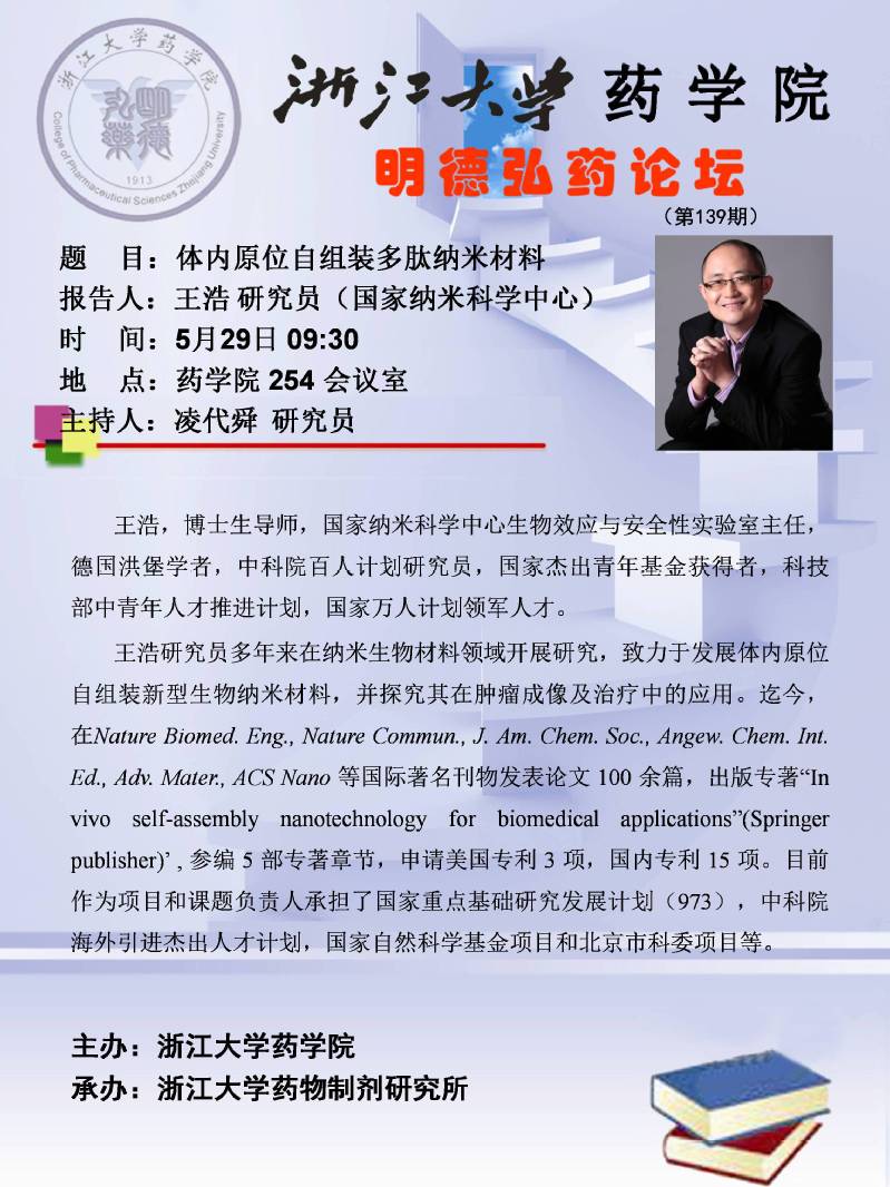 【药学院】明德弘药论坛(第139期):国家纳米科学中心王浩研究员学术报告