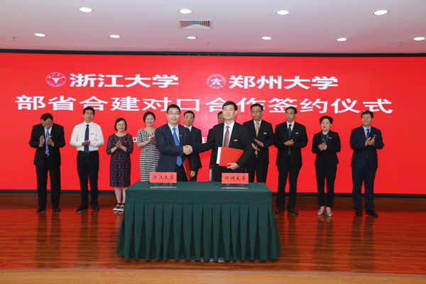 浙江大学副校长罗卫东和郑州大学副校长赵明皞分别代表双方签署了《浙江大学郑州大学关于推进部省合建高校对口合作工作协议》。