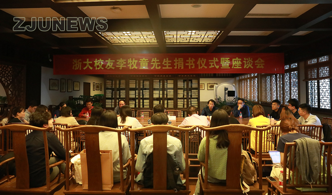 10月14日,浙江大学校友李牧童向浙江大学图书馆、档案馆、校友总会、人文学院赠送个人作品,并与人文学院师生代表开展座谈,就天赋与努力、文学创作的情怀与思想、个人成长与职业规划等话题展开讨论。