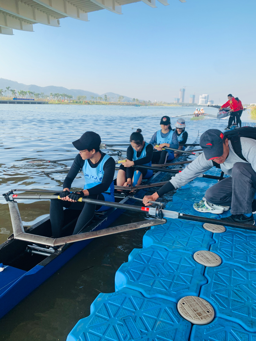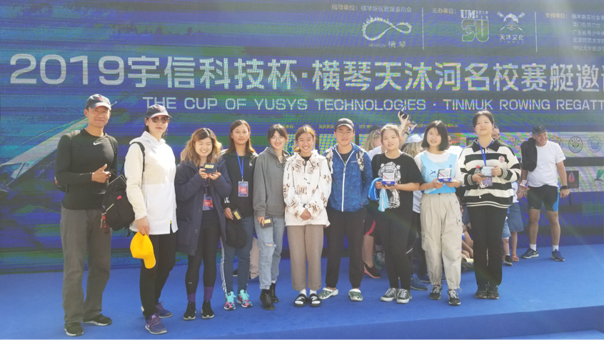 2019年12月1日上午,为庆祝澳门回归二十周年,2019横琴天沐河名校赛艇邀请赛在广东省珠海市举行。此次受邀参加比赛的高校队伍有耶鲁大学、清华大学、北京大学、浙江大学、同济大学、西安交通大学、西安电子科技大学、中山大学、以及东道主澳门大学学生会赛艇队。强手如林,比赛的激烈程度可见一斑。我校赛艇队派出九名女队员,组成两条四人双桨无舵手艇参赛。