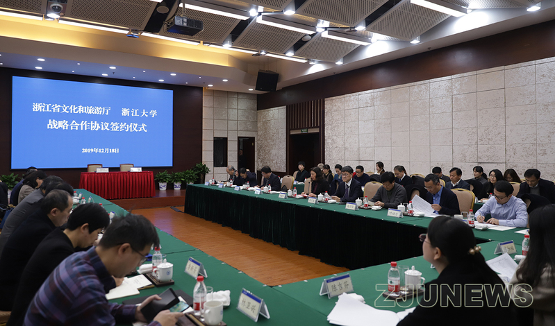 12月18日,浙江大学与浙江省文化和旅游厅在紫金港校区签约,双方正式建立战略合作关系。