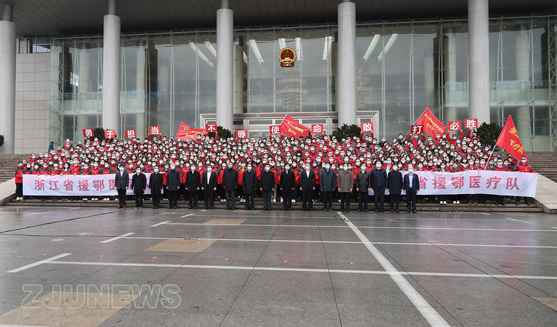 浙江省委书记车俊出席出征仪式并讲话。浙江省省长袁家军出席并为医疗队授旗。浙江大学党委书记任少波出席仪式。