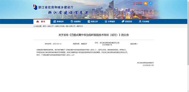 在专业领域方面,设计院本着职业精神下的社会责任心,充分发挥技术优势,积极配合浙江省住房与城乡建设厅,集中人力和技术资源,在短时间内主编和参编了6本导则(或指南)。主编了《传染病应急医院(呼吸类)建设技术导则》和《装配式传染病应急医院建造指南》两本导则,作为主要参编单位参与了《医院烈性传染病区(房)应急改造技术导则》《新型冠状病毒疫期办公建筑运行管理防疫技术导则》《方舱式集中收治临时医院技术导则》和《新型冠状病毒疫期教育建筑运行管理防疫技术导则》的编制。至截稿时,除《新型冠状病毒疫期教育建筑运行管理防疫技术导则》其他五本均已颁布。这些导则和指南的发布对防控疫情具有实际的指导意义。