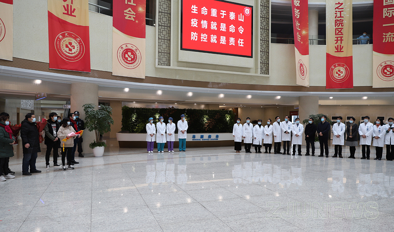 浙江大学党委书记任少波、副校长周天华一行来到浙大一院之江院区,与奋战在重症隔离病房一线的医护人员进行视频连线,听取医院防控工作汇报,到一线职工家属家中慰问。任少波一行也为10名出院患者送上祝福,并叮嘱他们保重身体。