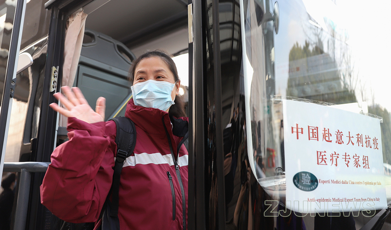 “相知无远近,万里尚为邻。”受国家派遣,我省组建中国抗疫医疗专家组赴意大利协助应对疫情。3月17日下午,专家组从浙江省人民大会堂出征。常务副省长冯飞讲话,副省长成岳冲为专家组授旗,浙江大学党委书记任少波出席。