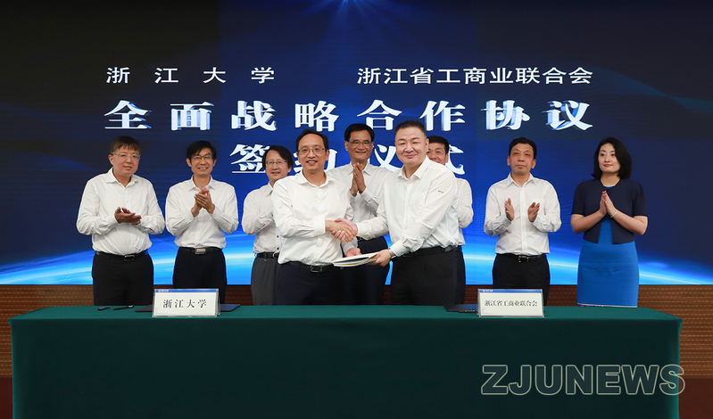 在浙江大学建校123周年来临之际,5月18日,浙江大学与浙江省工商业联合会在紫金港校区签署全面战略合作协议,共同开创具有示范效果的新型校企合作模式。